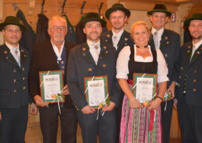 Sowie die die Ehrungen für 25 Jahre Vereinstreue, welche mit der silbernen Ehrennadel bedacht wurden: Anfang Heidi, Rachl Sepp jun., Rachl Stefan, Zollner Robert, Schützinger Franz.